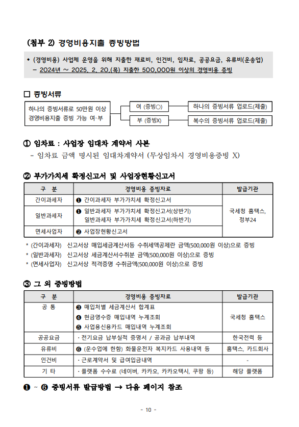 - 50만원 현금 지원 (사업주 계좌로 입금)