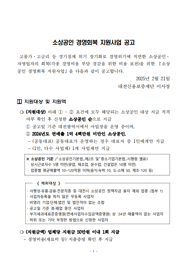 대전광역시에서 사업장을 운영중이라면 소상공인 지원으로 50만원 지원받을수 있습니다.