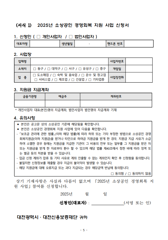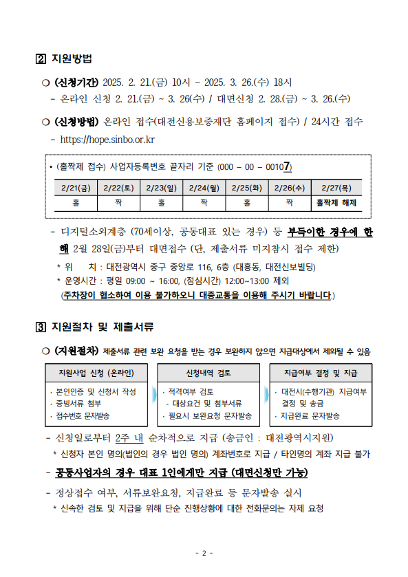 대전 소상공인지원 신청은 온라인신청 또는 방문신청이 가능합니다. 방문신청은 대기시간이 길어 불편하므로 온라인신청을 권장합니다.