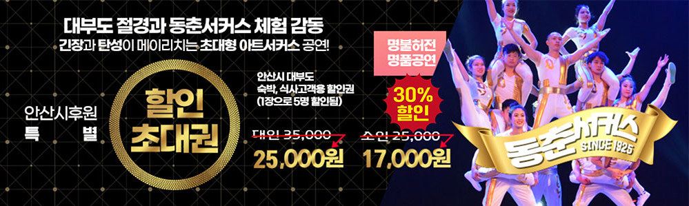 아래 버튼을 클릭하여 동춘서커스 입장료 30% 할인혜택을 받아가시기 바랍니다.