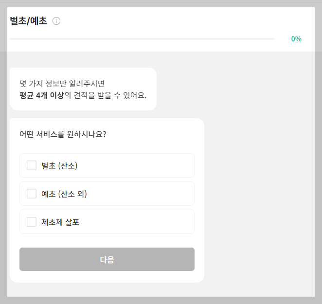 숨고 어플을 다운받았다면 몇가지 정보만 입력하면 자동으로 견적서가 도착합니다.