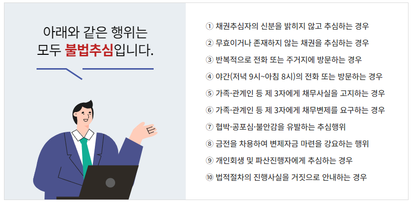 아래와 같은 행위는 모두 불법추심에 해당됩니다.