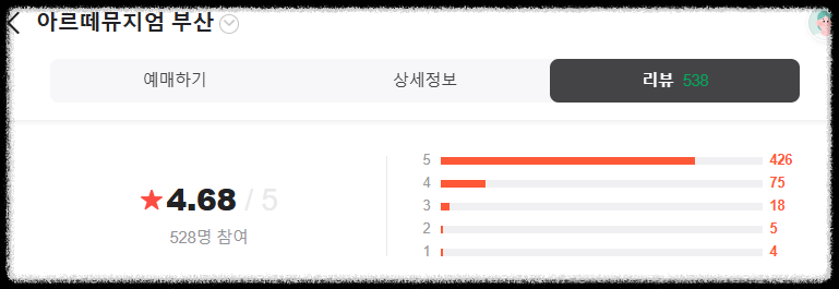 네이버예약으로 방문한 실제 관람자의 후기를 확인해 보시기 바랍니다.