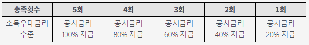 아래 정부기여금 지급표를 기준으로 지급됩니다.