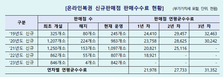 신규로 개업한 일반 로또 판매점의 경우에도 평균 수익이 1년차에 2200만원, 2년차 2700만원, 3년차 3100만원을 올린다고 하니 도전해 볼만한 사업이라는 생각이 듭니다.