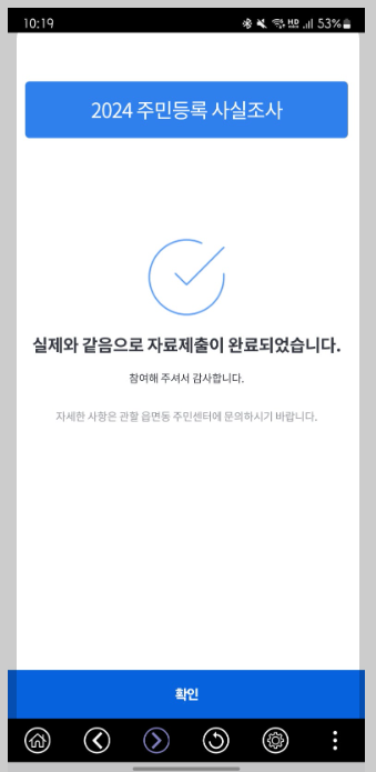 정부24 앱에서 나오는 순서대로 따라가면 주민등록 사실조사를 쉽게 마칠수 있습니다.