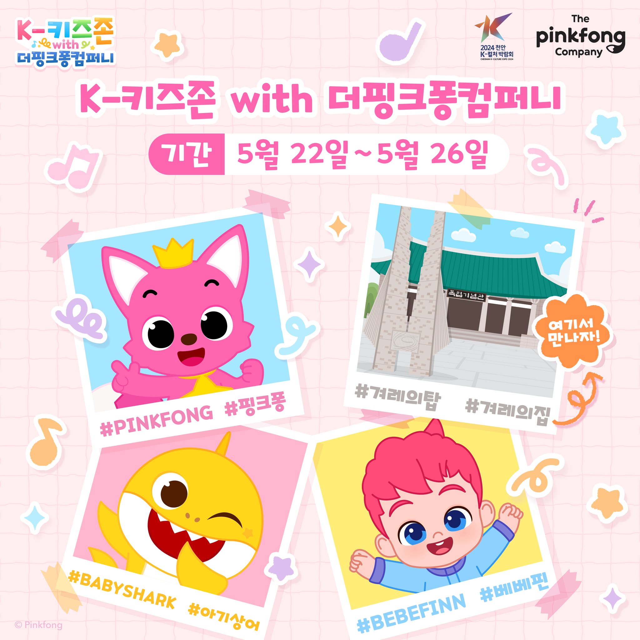 핑크퐁, 아기상어, 베베핀과 함께하는 키즈존을 운영합니다.