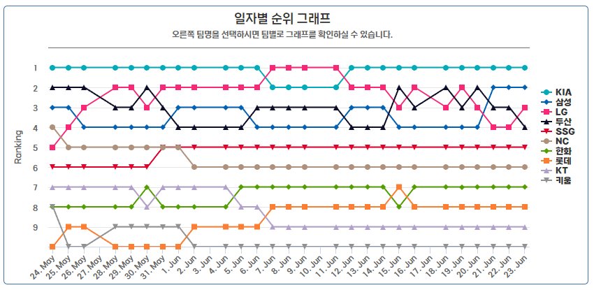 아래 그림처럼 팀순위 변동 그래프도 확인할 수 있습니다.
