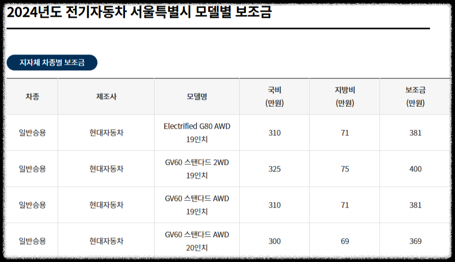 정부보조금은 어느 지역이든지 동일한 차종이라면 동일한 보조금을 받지만, 지자체보조금은 지역마다 다르기 때문에 결국 전기차보조금은 지역마다 다르다고 할 수 있습니다.